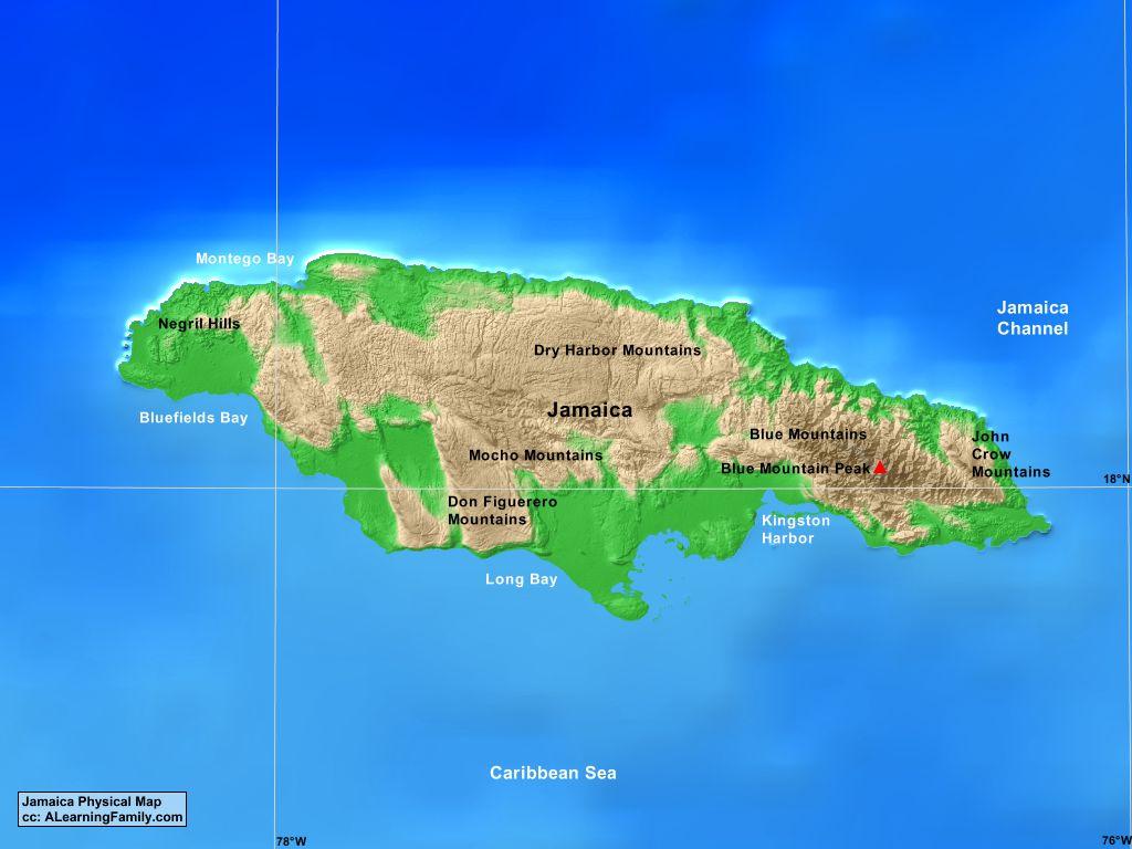 Mapa de montañas de jamaica . Jamaica mapa de montañas (Caribe - Américas) para imprimir. Jamaica mapa de montañas (Caribe - Américas) para descargar.